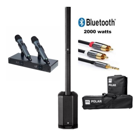 Notre pack se compose d’un système de colonne amplifiée d’une puissance de crête de 2000W, accompagné d’un subwoofer de 12″, équipé de haut-parleurs de médium 6×3″ en néodyme et d’un haut-parleur d’aigus de précision de 1″. Le mixeur intégré offre une connexion Bluetooth pour une diffusion aisée de votre musique.